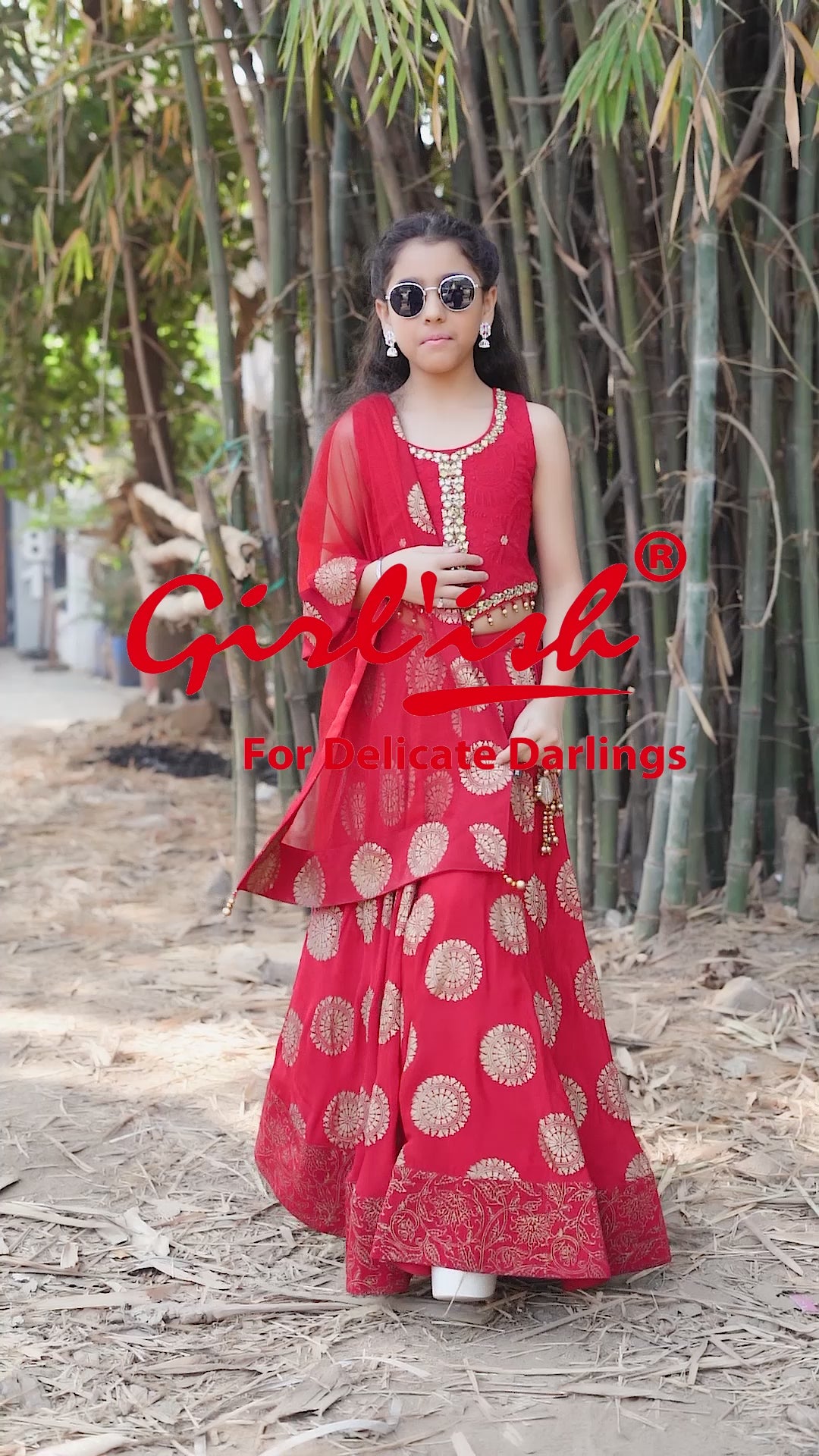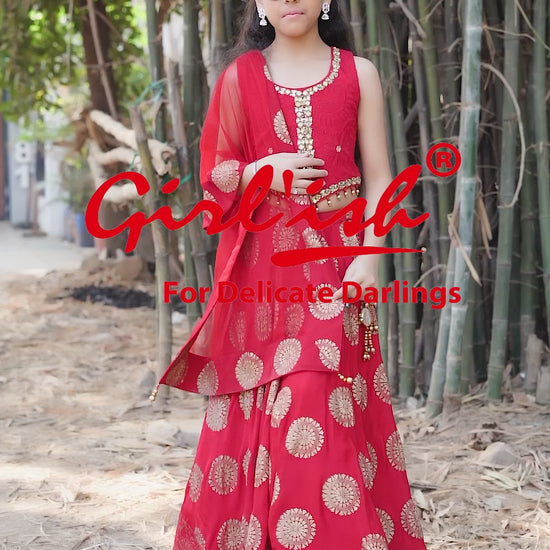 Let your little one shine in this stunning Red & Gold Lehenga Choli Set, a perfect blend of tradition and modern elegance. Designed for special occasions, this outfit features intricate embroidery, a regal color palette, and a graceful silhouette that will make your child stand out effortlessly. Whether it's a wedding, festival, or family gathering, this lehenga set is a must-have for every young fashionista.