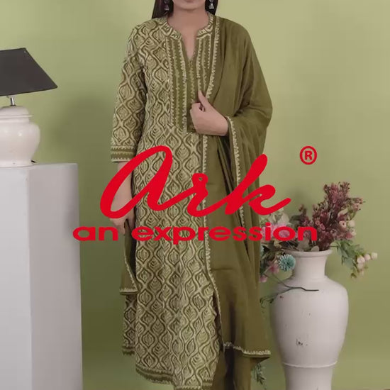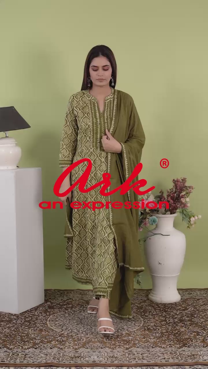 This green cotton anarkali set adds freshness to your wardrobe – ideal for casual functions, festive wear, and cultural celebrations.