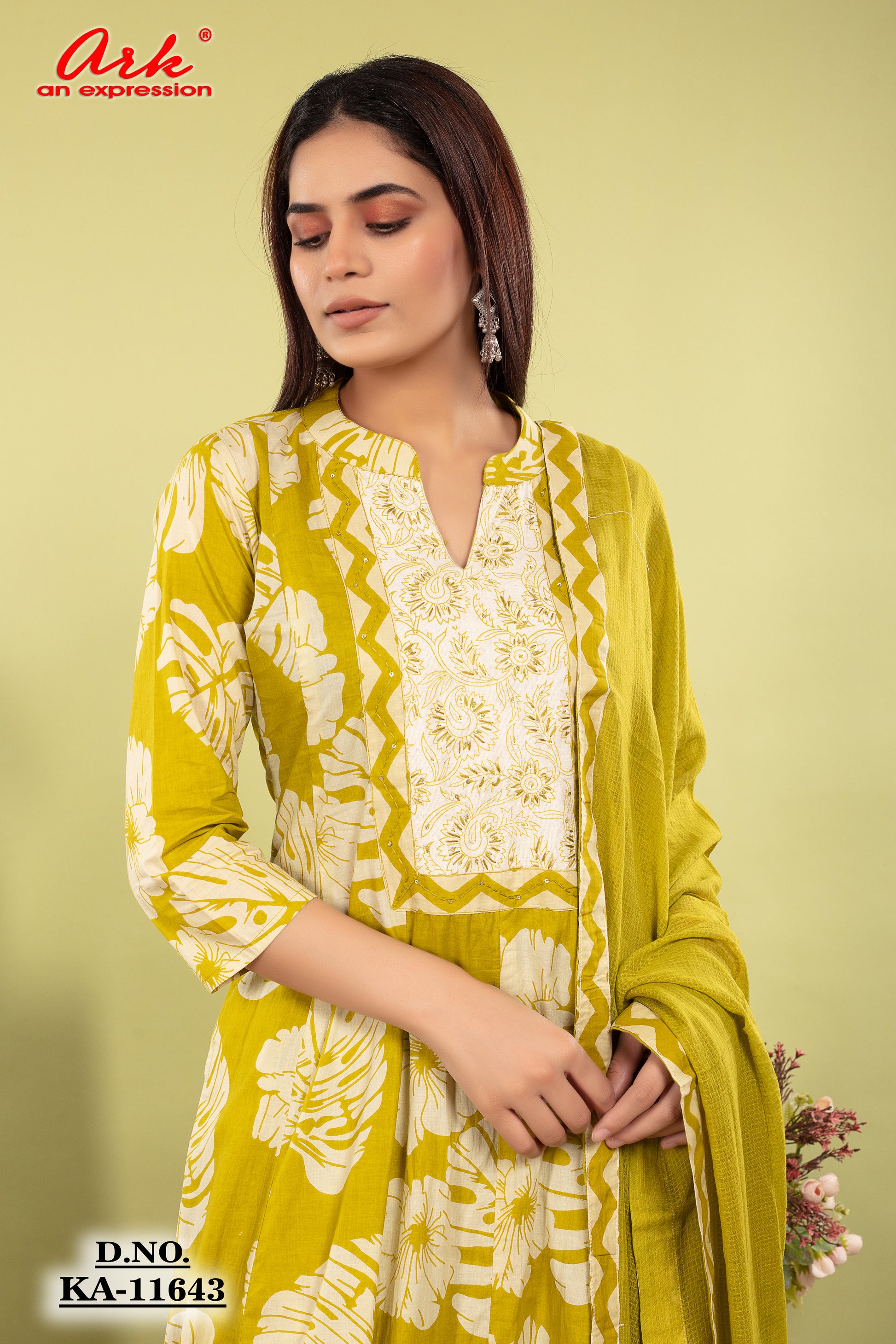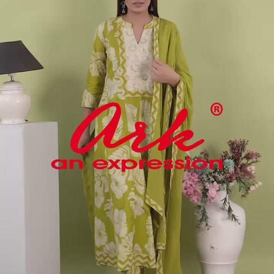 Green Cotton Anarkali Suit Dupatta Set with Kota Doriya | Label Anju Kumar