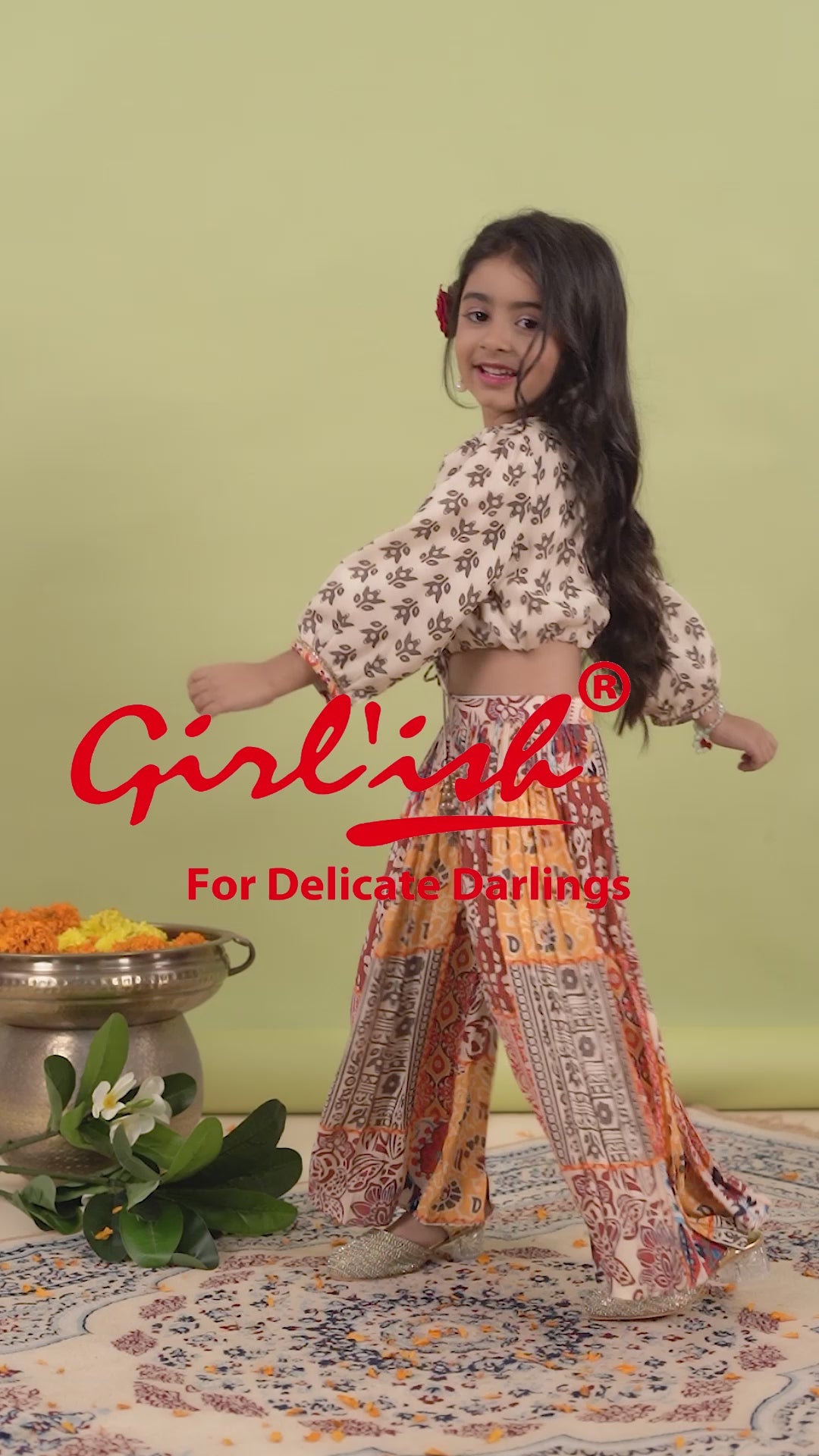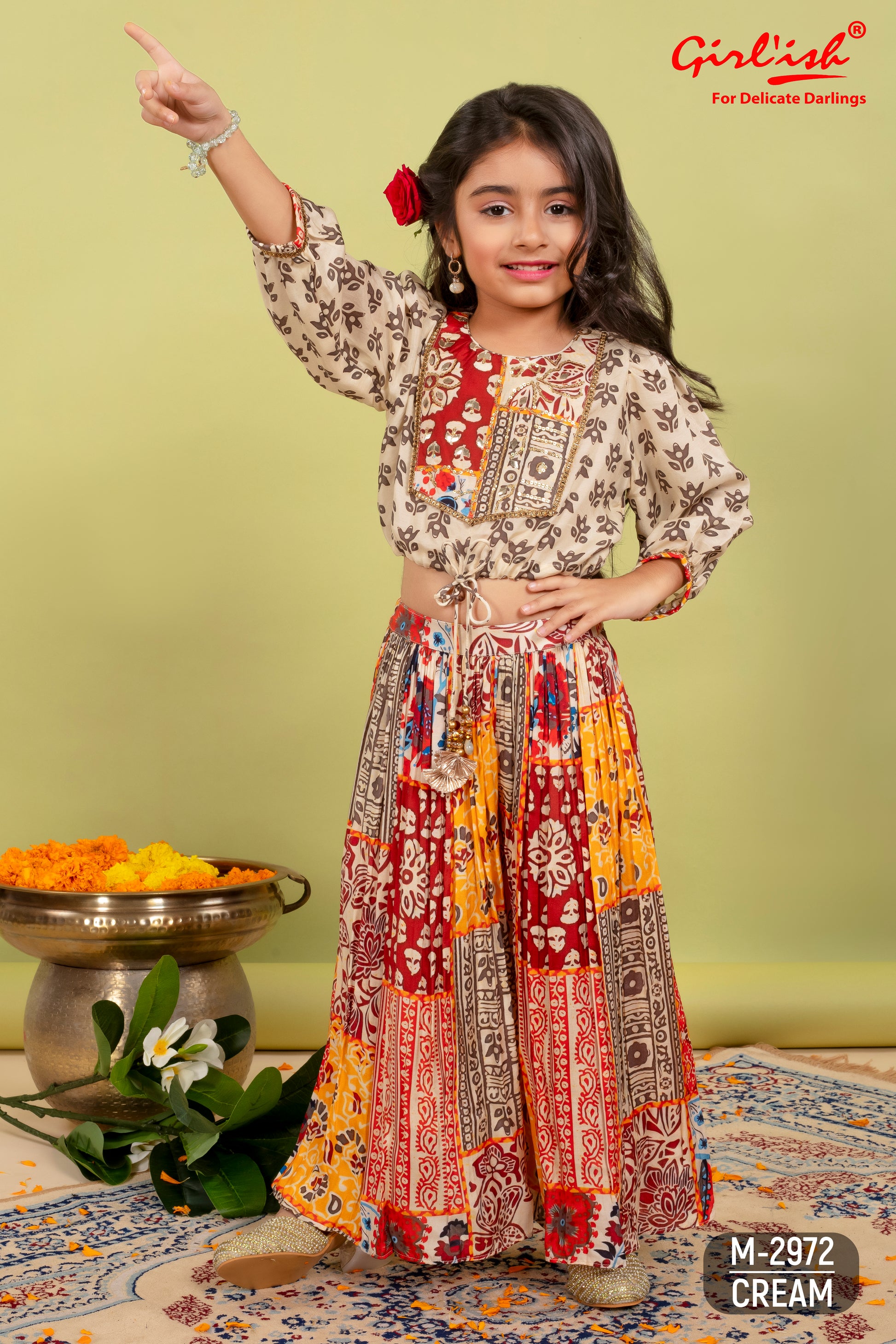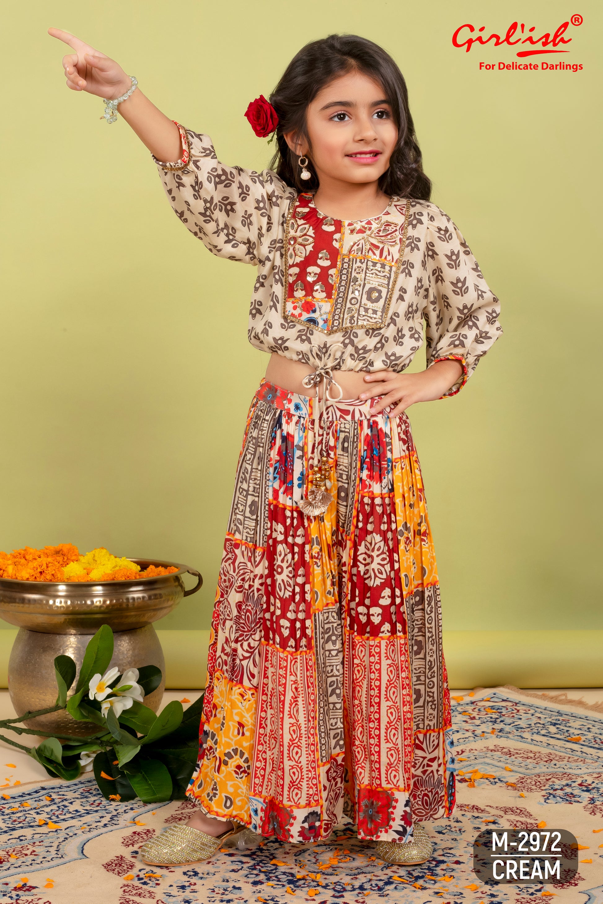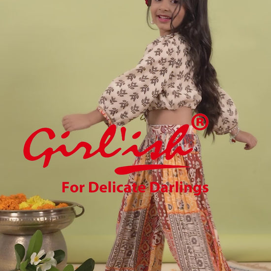 Crop top with sharara set in pure muslin for girls