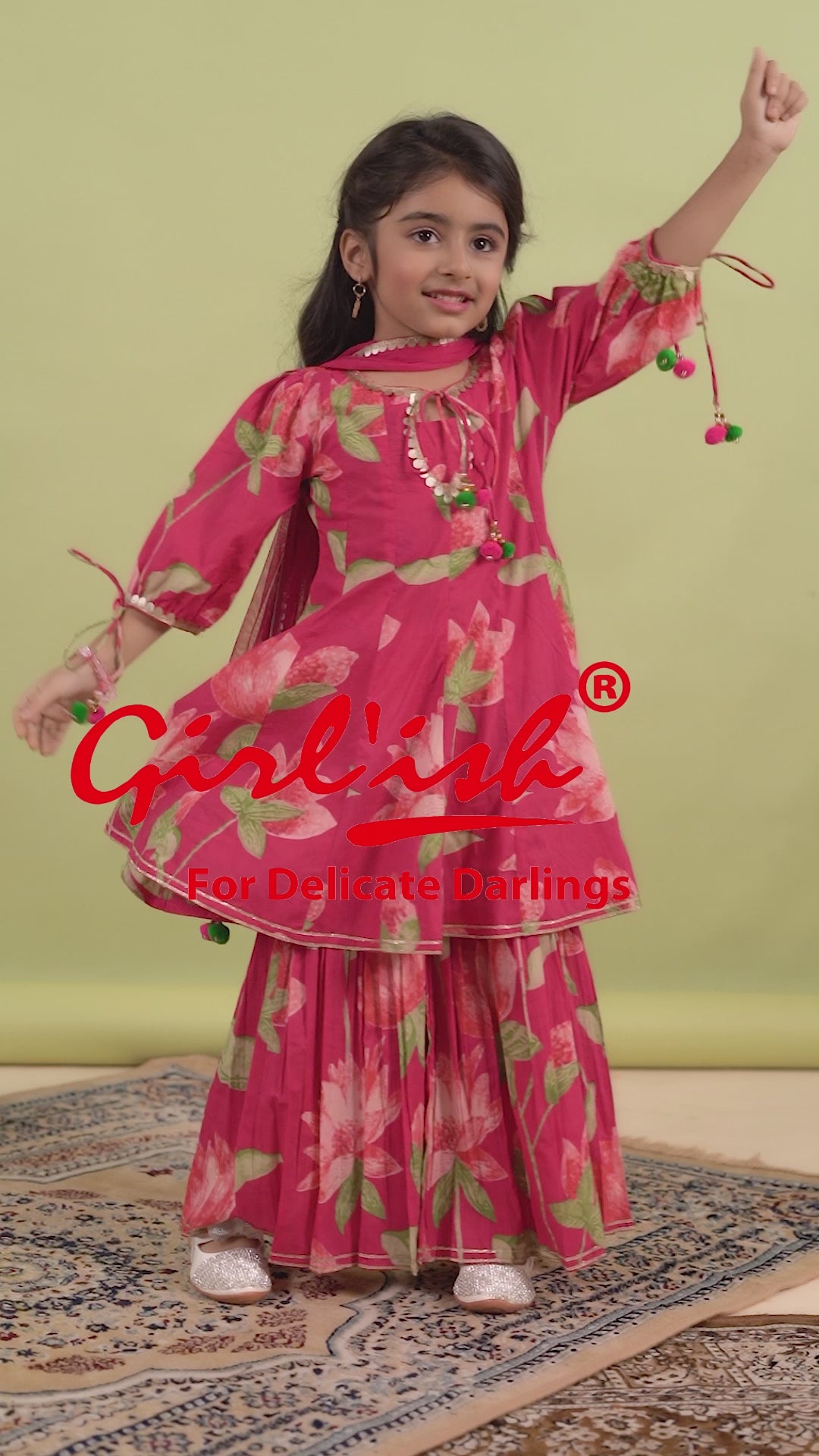 • Category: Kids Ethnic Wear – Anarkali + Sharara Set
