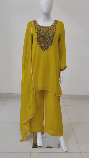 Mustard Viscose Georgette Partywear Coord Set with Zardozi Embroidery – Women’s Ethnic Wear