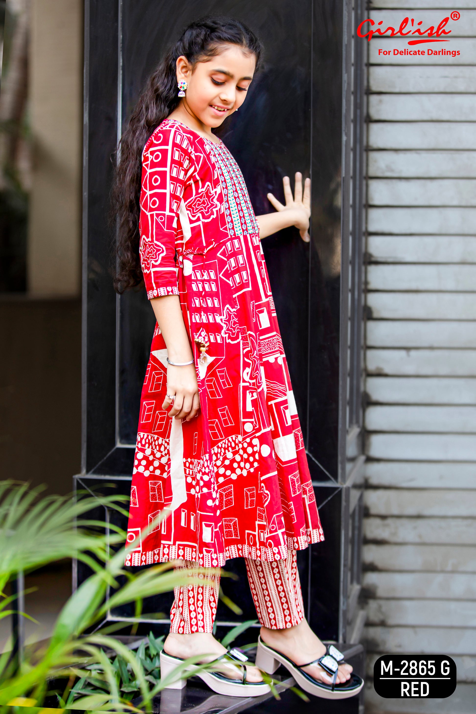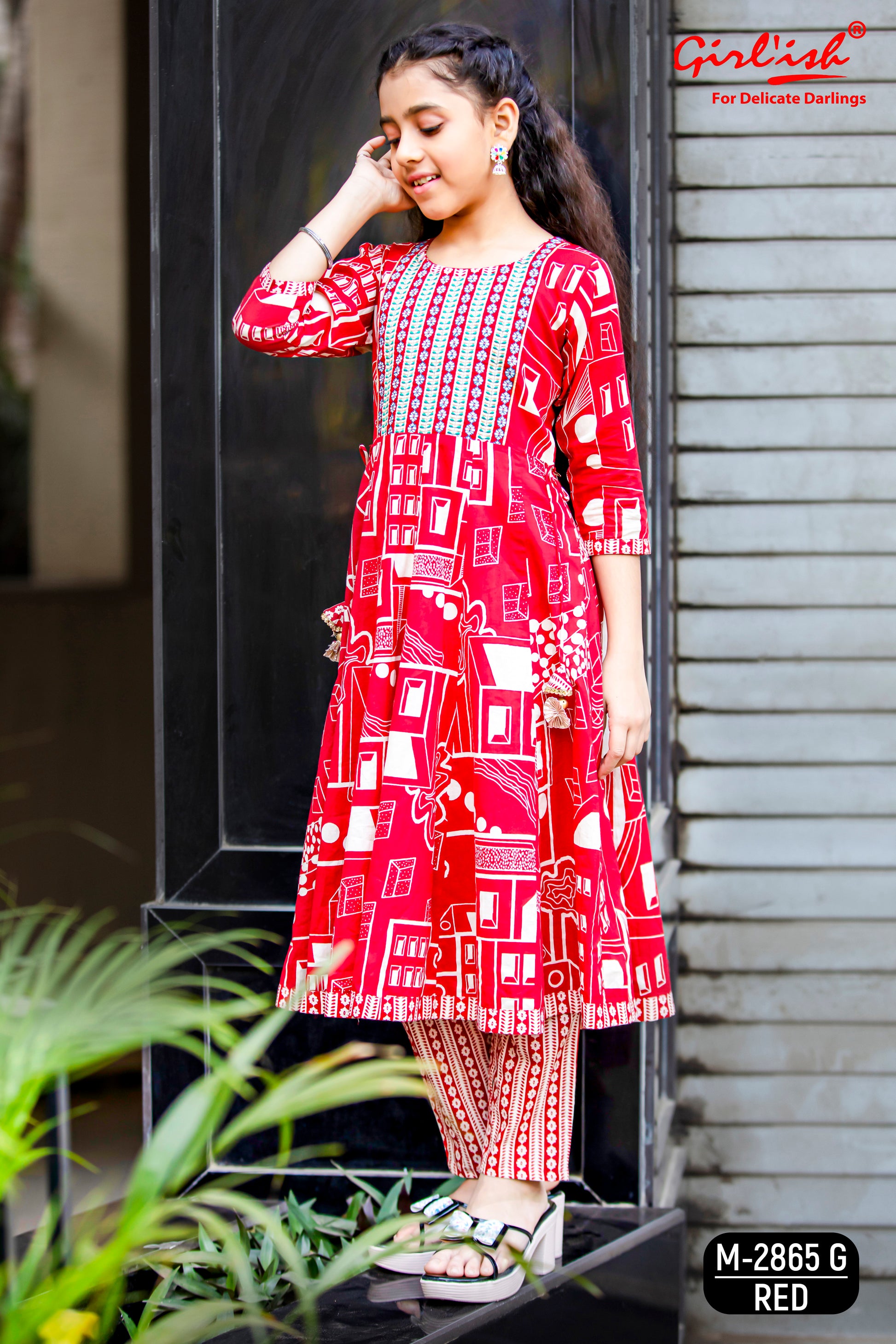 Make a bold style statement with this Red Printed Cotton Anarkali Set, designed for modern young girls who love fashion and comfort. This set features a beautifully crafted printed Anarkali and matching pants, perfect for casual outings, festive occasions, and everyday wear.