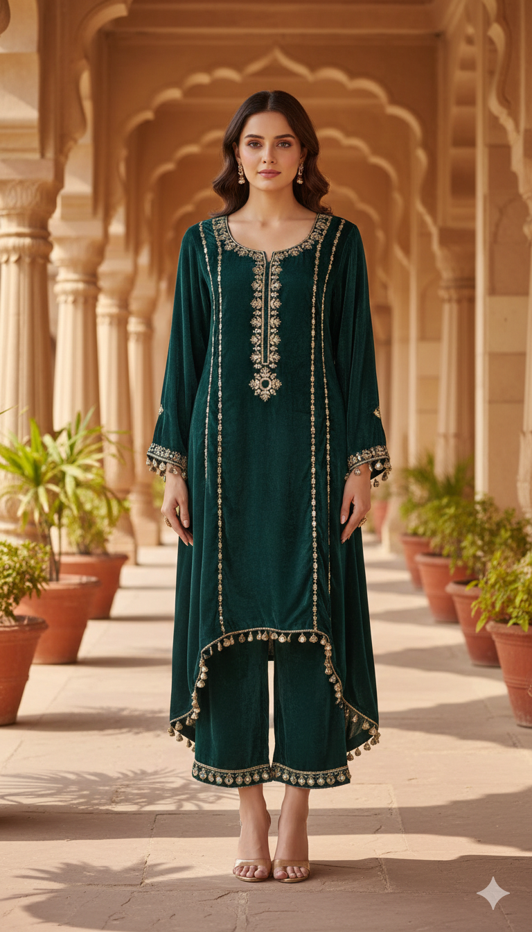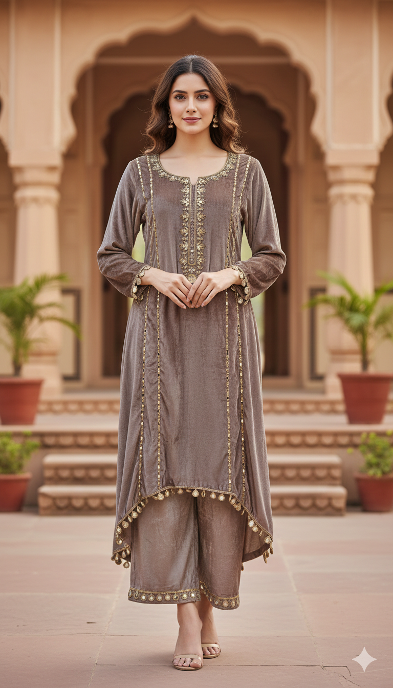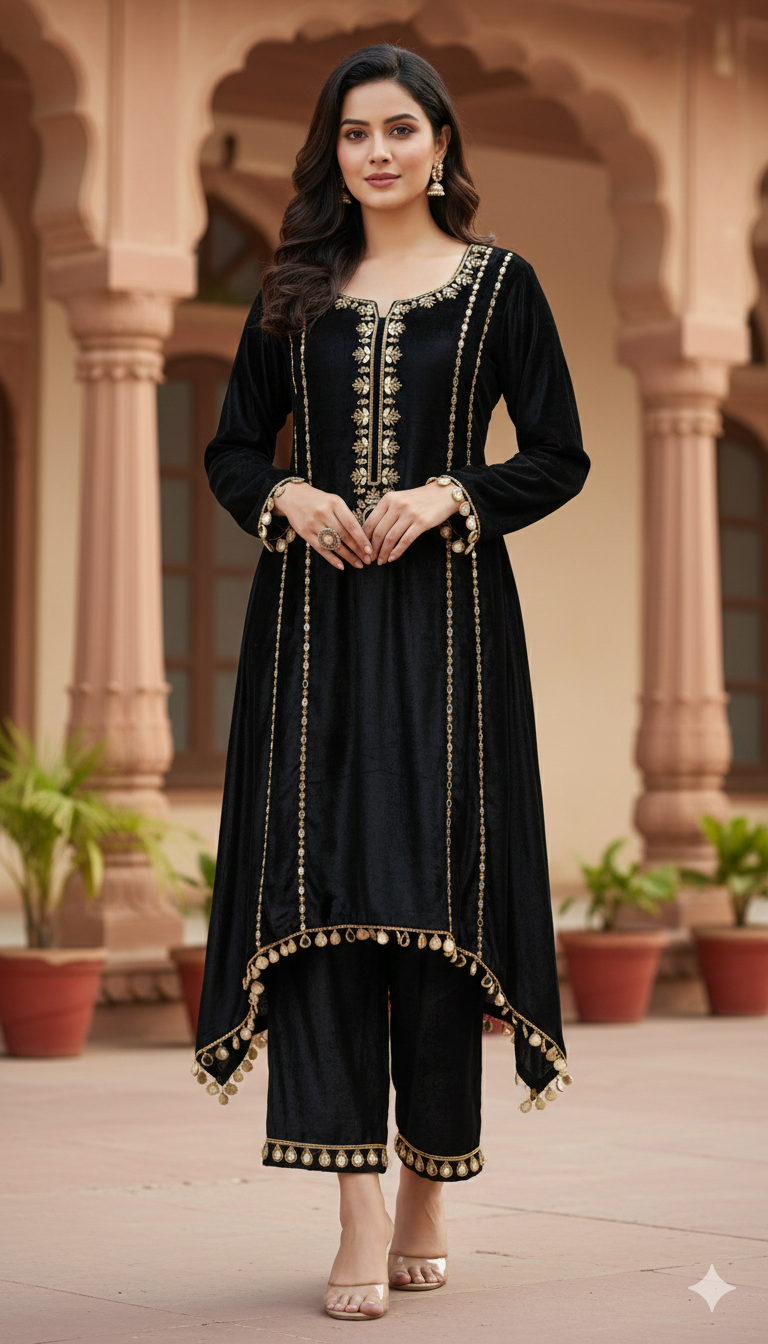 Velvet Coord Set with Mirror Hand Work